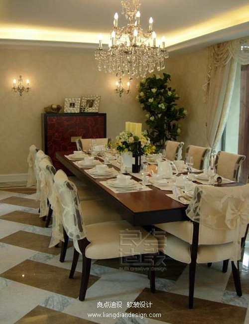 本案運(yùn)用新古典風(fēng)格,新古典風(fēng)格是將懷古的浪漫與現(xiàn)代人對生活需求的相結(jié)合,兼容華貴典雅與時尚現(xiàn)代,反映出后工業(yè)時代個性化美學(xué)觀點(diǎn)和文化品味,在家具配飾上色彩典雅,造型上保留傳統(tǒng)的文化底蘊(yùn),同時摒棄了過于復(fù)雜的機(jī)理和裝飾,沙發(fā)素雅的布面與柔美的線條結(jié)合,營造出一個即優(yōu)雅又愜意的空間,黑白搭配的餐桌餐椅使餐廳彰顯大氣,精致的餐具花藝點(diǎn)綴出細(xì)膩優(yōu)雅,書房運(yùn)用三彎腿描銀書桌使空間彰顯華貴風(fēng)范,臥室運(yùn)用柔和米色棉麻質(zhì)地并搭配同色系靠包,使人感受自然舒適。