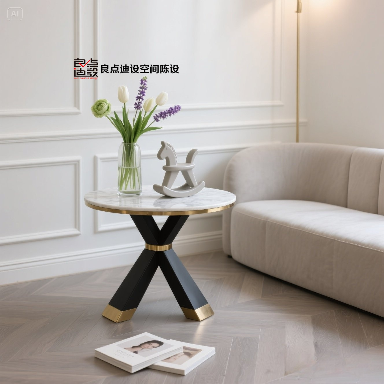 咱先看這張圖里的小茶幾,大理石臺面搭配上金屬和黑色的底座,高級感一下子就有了有木有!再配上旁邊淺色系的沙發(fā),整個色調(diào)和諧又舒服。沙發(fā)旁邊還擺了一束鮮花,有白有紫,給整個空間增添了一抹靈動的氣息。