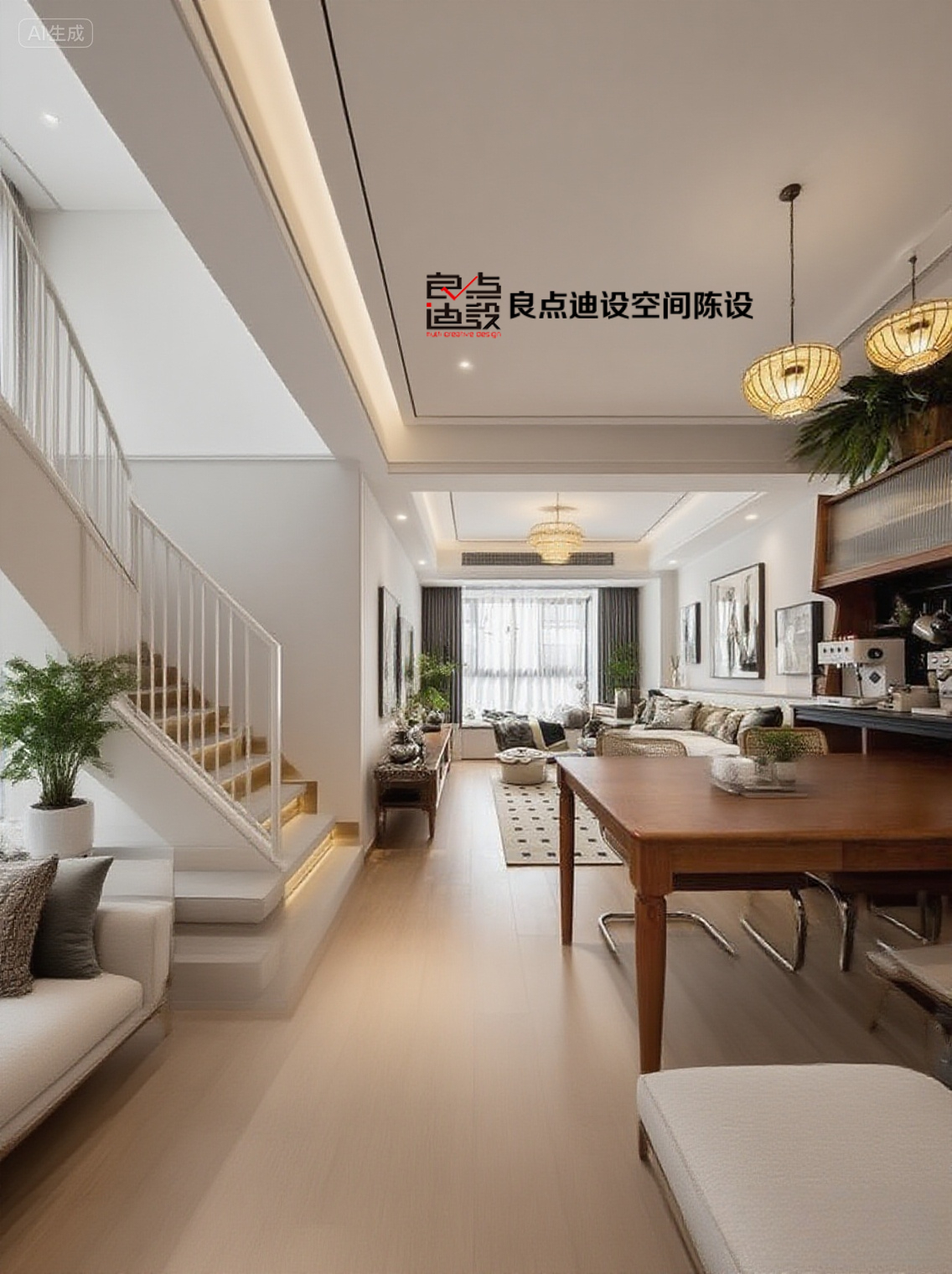 夫妻兩人工作區域融入餐廳范圍,牽起孩子在餐桌寫作業習慣,描繪親子相伴讀書、工作的情境。