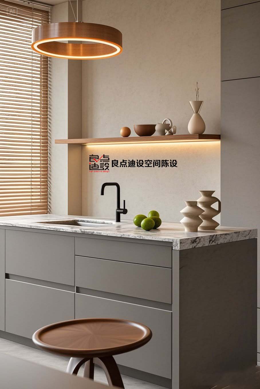就看圖里這個地方,是不是一眼就被那個獨特的吊燈吸引了?這環形的設計,暖黃色的光一打,氛圍感直接拉滿有沒有!柔和的光線不僅能給空間增添溫馨感,還超適合晚上在這兒小酌一杯或者看看書呢。