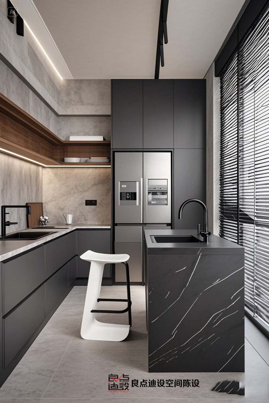 L 型或 U 型櫥柜:這兩種布局是現代簡約風廚房的常見選擇,很合理。櫥柜分成不同區域,操作區和洗滌區、烹飪區相鄰,拿食材和廚具都方便。
