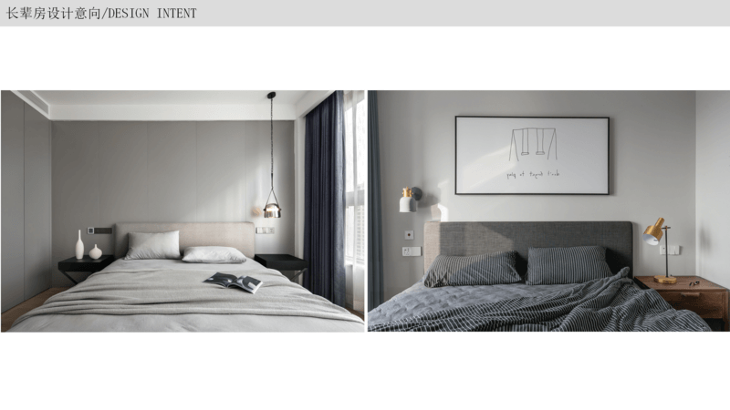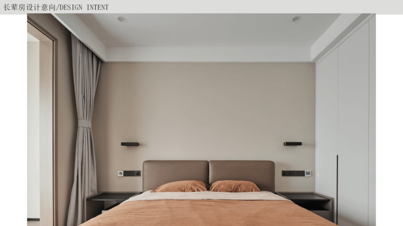 長輩房 以簡約大氣為主,隨著年紀的增長,生活需求是方便安全為主,以簡單的裝飾畫為背景或者做簡單軟包,整個空間顯得溫馨一些,放置床頭柜燈方便起夜,按需要增加收納即可。