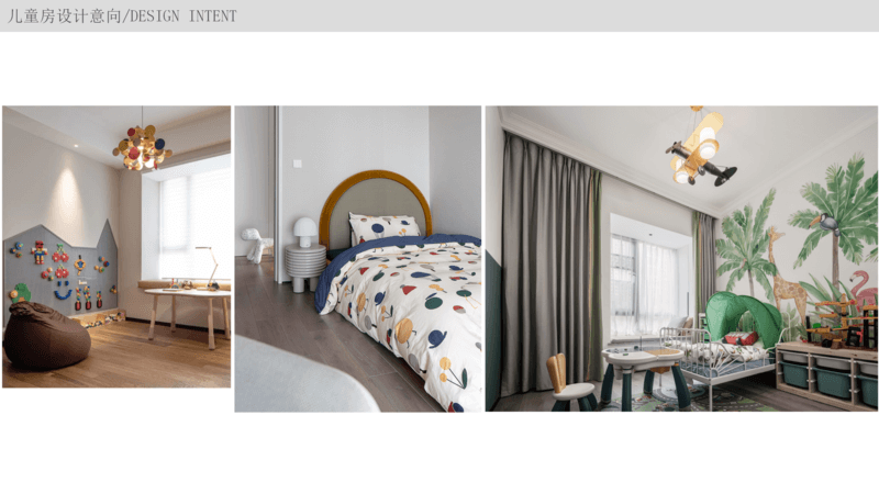 兒童房 主要以學習空間為主,用軟裝飾品來區分性別,如果業主孩子年紀較小也可以將這個房間當做親子互動區,小孩子都比較愛創造,那么可以設計一面黑板墻或者積木墻用來“亂涂亂畫”。