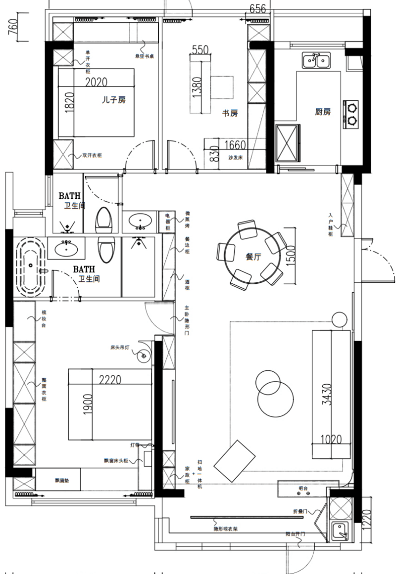4、書房陽臺地面找平同室內高度,小陽臺不封窗;增加沙發床也可以當做臨時的房間。