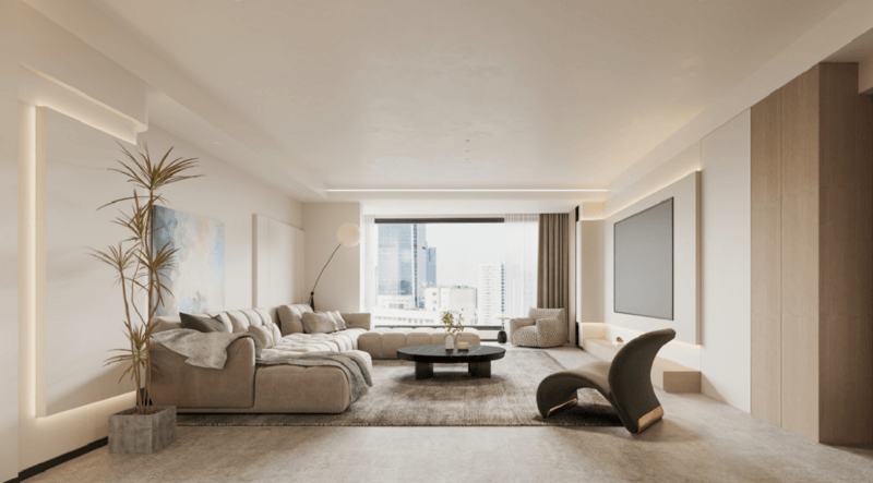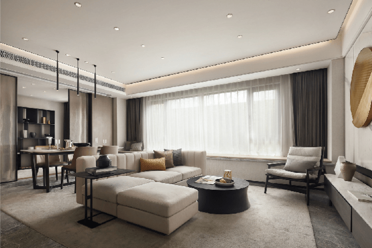 餐客廚一體,讓空間效率變得更高,功能能夠重疊使用,如餐桌貼近廚房,餐桌可以作為備餐區,餐廳與客廳相融,餐椅也是客廳的“沙發”。